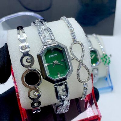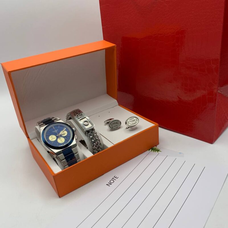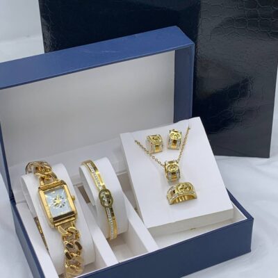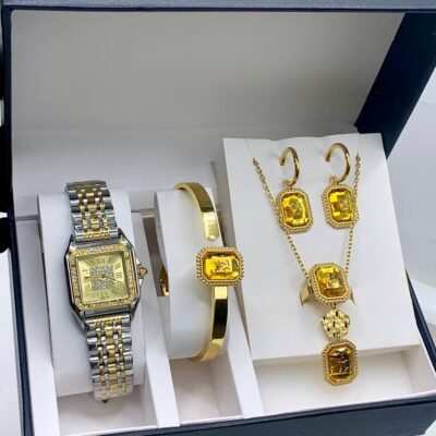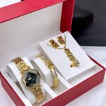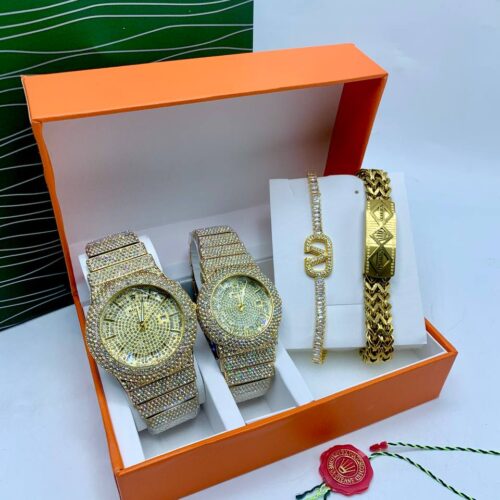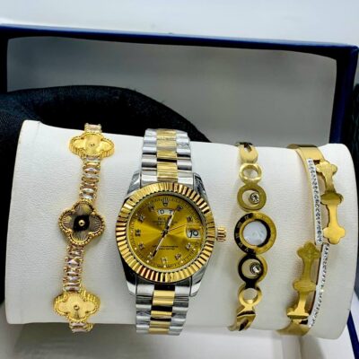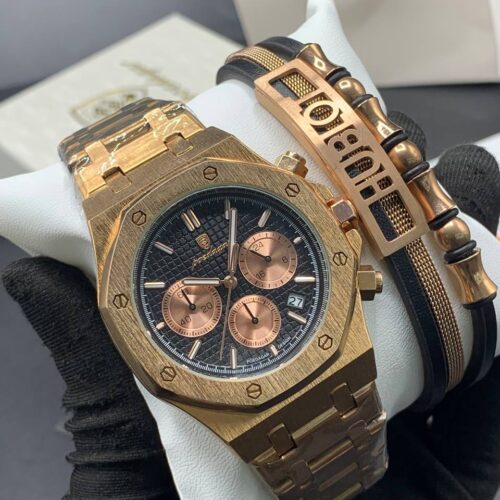 POEDAGAR Gold Octagonal Chronograph and Bracelet Set