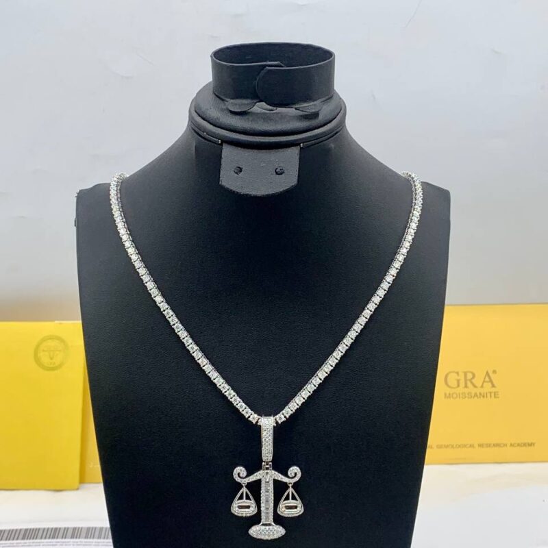 VVS Moissanite Diamond Justice Scale Pendant with Tennis NeckChain 💎