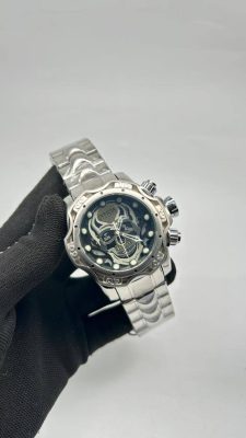 Unleash your inner rebel with this eye-catching Best Quality Invicta Watch. This powerhouse timepiece commands attention with its massive, highly polished gold-toned case and bracelet. The standout feature is the fierce, stylized skull design prominently displayed on the dial, giving the watch an aggressive and unmistakable edge. This is more than a watch—it’s a statement of fearless individuality.
