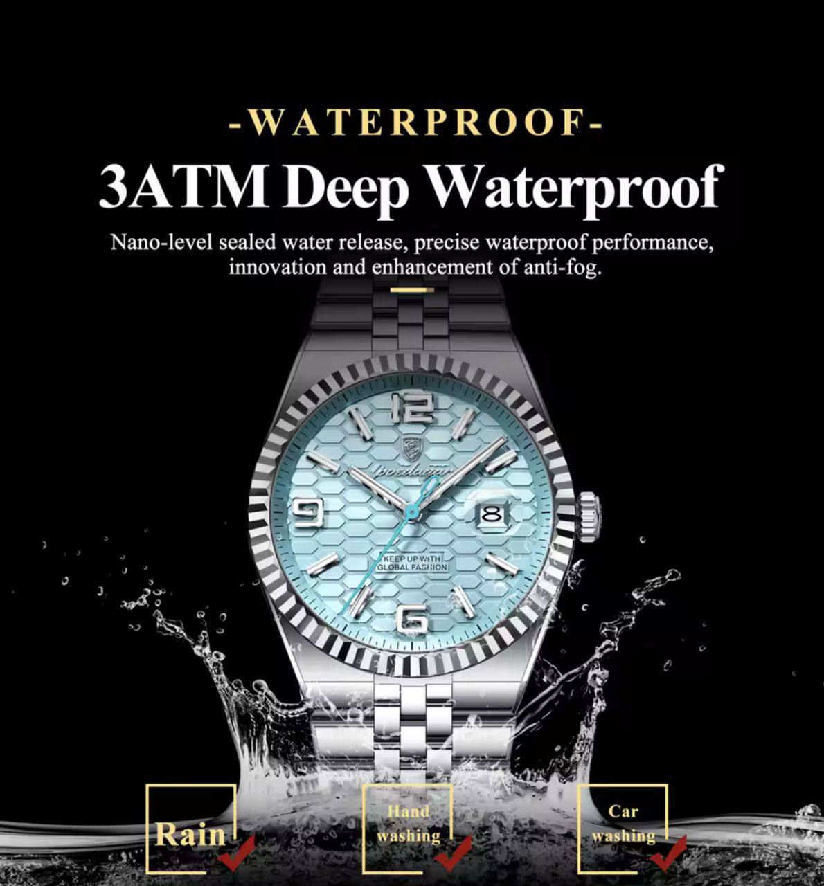 Men’s Luxury POEDAGAR Honeycomb Dial Day-Date Watch