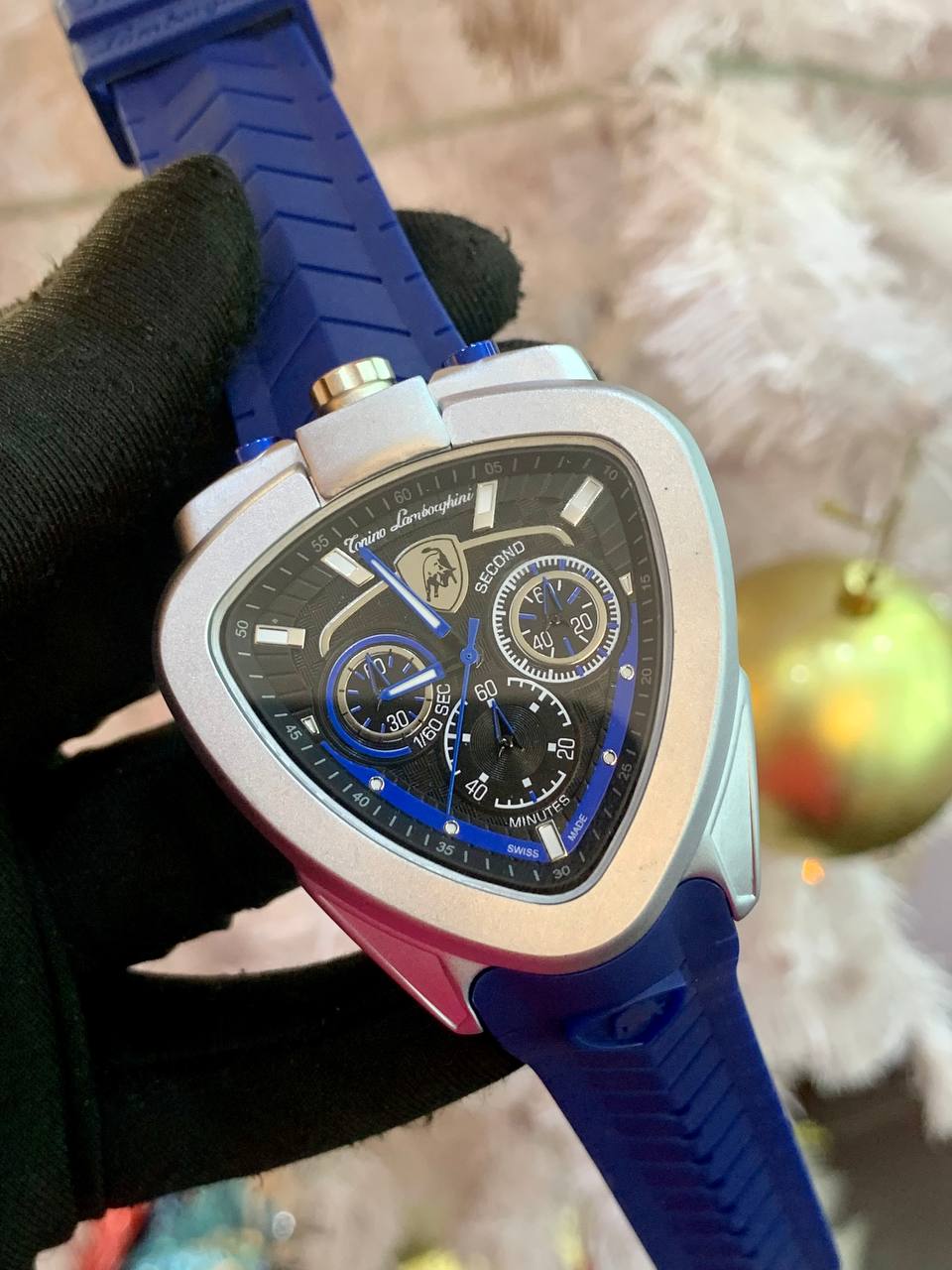 Paired with a bold, integrated blue rubber strap featuring a distinct V-pattern tread, this timepiece offers maximum durability and aggressive style. Engineered for those who demand performance, it combines Italian luxury with an aerodynamic aesthetic that makes a definitive statement on the wrist.